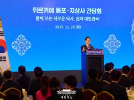 이재명 대통령은 순방 일정을 마치고 귀국하기에 앞서 25일(현지시간) 튀르키예 앙카라에서 동포·지상사 간담회를 개최했다. 이번 간담회에는 이스탄불과 앙카라 등 튀르키예 전역에 거주하는 동포단체 대표