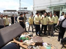 김민석 국무총리는 7월 20일 오전, 이번 호우로 제방 유실, 도로・주택・상가 침수 등 많은 피해를 입은 광주광역시 북구를 방문했다. 김 총리는 수해 발생 직후부터 현장을 방문하려 했으나, 관계 공무원들