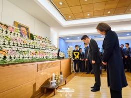 이재명 대통령과 김혜경 여사가 1월 27일 서울 종로구 서울대병원 장례식장에 마련된 고 이해찬 전 총리 빈소를 찾아 영정을 향해 묵념하고 있다.