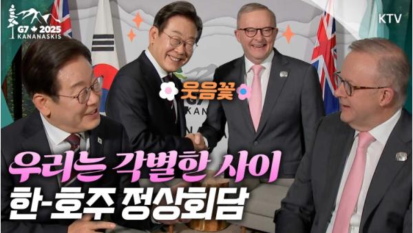 주요 7개국(G7) 정상회의 참석차 캐나다 카나나스키스를 방문 중인 이재명 대통령은 16일 오후(현지시간) 앤소니 알바니지 호주 총리와 정상회담을 가졌다.이 대통령은 알바니지 총리의 대통령 취임 축하에