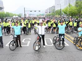 오세훈 서울시장은 11일 오전 7시 40분 광화문광장에서 열린 ‘2025 서울자전거대행진’에 참석해 1만여 명의 행사 참여자들을 응원하고 월드컵공원 평화광장까지 자전거를 타고 함께 달렸다. 올해로 17