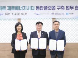 인천경제자유구역청(청장 윤원석)은 7월 4일 송도국제도시 G타워에서 인천테크노파크, 에너지사업자인 ㈜헤리트와 ‘IFEZ 스마트 제로에너지시티 통합플랫폼 구축’을 위한 업무협약을 체결했다고 밝혔다.이