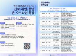 인천광역시 청년지원센터 ‘유유기지 인천’에서 청년 취·창업역량 강화 프로그램인 ‘취준클래스’를 오는 6월 25일부터 운영한다. ‘취준클래스’는 인천 청년을 대상으로 취·창업 관련 노하우를 제공하는