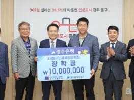 광주 동구는 광주은행노동조합에서 동구인재육성장학회에 장학금 1천만 원을 전달했다고 22일 밝혔다.기부식은 22일 오전 동구청 접견실에서 열렸으며 광주은행노동조합 박만 위원장, 광주은행 김재춘 부행
