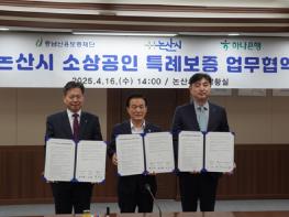 충남신용보증재단이 논산시, 하나은행과 손을 맞잡고 지역 소상공인들을 위한 24억원 규모의 추가 지원에 나섰다. 4월 16일 논산시청에서 진행된 협약식에는 백성현 논산시장, 이동열 하나은행 충청영업그