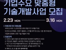 인천테크노파크(인천TP)는 지역 제조벤처기업의 기술경쟁력 강화를 위해 ‘2026년 기업수요 맞춤형 기술개발사업’의 참여기업을 오는 3월 16일까지 모집한다고 밝혔다. 이번 사업은 인천 소재 제조벤처기업