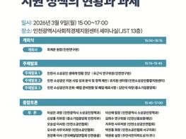 인천연구원은 2026년 3월 9일 오후 3시 인천광역시사회적경제지원센터 세미나실에서 “인천시 소상공인 지원 정책의 현황과 과제”라는 주제로 '제11차 현장동행 정책대화'를 개최한다. 이 행사는 어려움 속