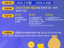인천항만공사는 지난해 인천항을 이용한 화주와 포워더 기업을 대상으로 이달 9일부터 내달 3일까지 ’25년 인천항 선사·화주·포워더 인센티브’ 지급 신청을 받는다고 9일 밝혔다. 인천항만공사는 인천항의