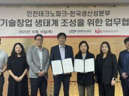 인천테크노파크는 지난 16일 한국생산성본부와 ‘외국인 창업 활성화 및 창업 생태계 조성을 위한 업무협약(MOU)’을 체결했다. 협약식에는 정승수 인천TP 디지털벤처창업사업단장과 김세은 KPC 동반성장본