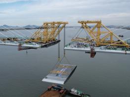 인천경제자유구역청은 12일, 해상 장대교량인 제3연륙교 상판이 하나로 연결 완료됐다고 밝혔다. 서해바다를 가로질러 중구 중산동과 서구 청라동을 잇는 제3연륙교의 마지막 상판을 서로 연결 함으로써 주