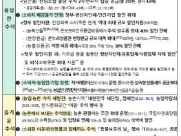 농림축산식품부는 풍성한 추석, 즐거운 추석, 안전한 추석을 주요 골자로 하는 '농업·농촌분야 추석 민생안정대책'을 마련했다고 발표했다. 그동안 추석 등 명절 대책은 주요 성수품의 공급 확대와 소비자