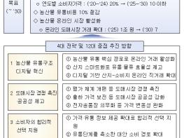 농림축산식품부는 9월 15일 '농산물 유통구조 개선 방안'을 발표했다. 최근 이상기후로 인한 공급 불안 등 유통 환경 변화로 농산물의 가격 변동성이 심화되는 가운데, 기존 도매시장 중심의 제도개선만으