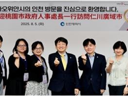 인천광역시는 우호도시인 대만 타오위안시와 인사정책에 관한 협력을 강화했다고 8월 5일 밝혔다.이날 인천시청에서 홍준호 시 행정국장은 대만 타오위안시 린 먀오 전(林妙貞) 인사처장 일행과 면담을 갖고