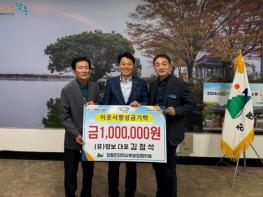 (유)명보 김점석 대표가 장동면사무소를 방문해 어려운 이웃을 위해 사용해 달라며 이웃돕기 성금 100만 원을 기부했다고 밝혔다.김점석 대표는 순천시에서 전기 공사업체를 운영하고 있으며, 지속적인 나눔