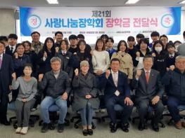 창녕군 사랑나눔장학회는 창녕군 파크골프협회 회의실에서 회원 30여 명이 참석한 가운데 제22회 장학금 전달식을 열고, 관내 고등학생 16명에게 총 800만 원의 장학금을 전달했다고 23일 밝혔다. 사랑나눔