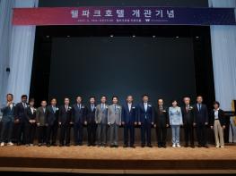 고창군 석정온천 관광지에 자연과 문화가 어우러진 프리미엄 복합관광시설 ‘고창 웰파크호텔’이 19일 개관식을 열고 공식 운영에 들어갔다.이날 오전 10시 개관식은 호텔 입구에서의 테이프커팅을 시작으