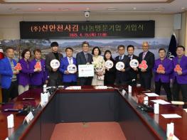신안군은 15일 신안군청 영상회의실에서 ㈜신안천사김(대표 권동혁)이 신안군 1호로 나눔명문기업으로 가입했다고 전했다. 나눔명문기업은 사회복지공동모금회에 3년 이내 1억 원 이상을 기부하는 고액 기