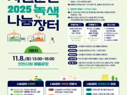 인천광역시는 인천시민의 탄소중립 실천과 나눔 문화 확산을 위한 대표 시민참여형 축제인 ‘2025 자원순환 녹색 나눔장터’가 11월 8일 인천애(愛)뜰 광장에서 폐장식을 겸한 3회차 행사를 끝으로 올해 일