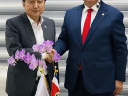 김영환 충북도지사는 15일 오후 영동엑스포에서 호르헤 발레리오 주한 코스타리카 대사를 만나 충청북도와 코스타리카 간 경제·문화 교류 확대 및 협력 방안에 대한 의견을 교환했다. 이번 만남을 계기로