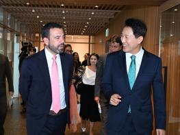 오세훈 서울시장은 26일 오전 11시 서울시청 집무실에서 카를로스 페르난도 갈란(Carlos Fernando Galan) 콜롬비아 보고타시장을 만나 양 도시 간 협력을 강화할 방안에 대해 논의했다. 서울시와 보고타시는