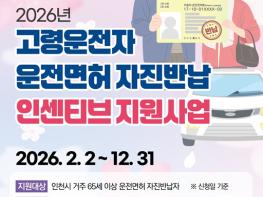 인천광역시는 고령운전자의 교통사고 예방과 안전한 교통환경 조성을 위해 고령자 운전면허 자진반납 제도 장려금을 2026년부터 최대 20만 원까지 확대해 시행한다고 밝혔다.인천시는 지난해 고령운전자 기
