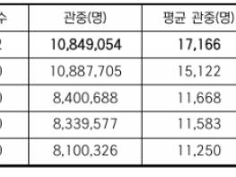 KBO 리그가 단일 시즌 역대 최다 관중 신기록 수립을 눈앞에 두고 있다. 9월 4일(목)까지 KBO 리그는 632경기만에 1,084만 9,054명의 관중이 야구장을 찾아 기존 단일 시즌 최다 관중 기록이었던 2024시즌