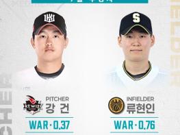 2025 메디힐 KBO 퓨처스리그의 7월 퓨처스 루키상의 주인공으로 WAR 0.37을 기록한 KT 투수 강건과 WAR 0.76을 기록한 상무 내야수 류현인이 선정됐다.투수 부문 수상자인 KT 강건은 장안고를 졸업한 뒤, 20