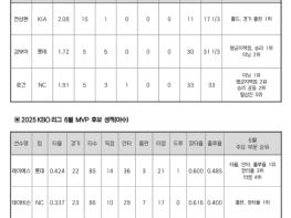 2025 신한 SOL뱅크 KBO 리그 6월 월간 MVP 후보 발표