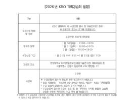 2026년 KBO 기록강습회가 1월 30일(금)부터 2월 1일(일)까지 서울 한양대학교에서 개최된다. 기록강습회는 야구 공식기록법의 보급과 이해를 통한 저변 확대를 목적으로 프로야구 원년인 1982년부터 개최됐