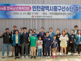 인천광역시 중구 체육회는 지난 21일 오전 인천생활문화센터 칠통마당에서 제54회 전국소년체육대회에 참가하는 중구 선수단의 출전식을 성황리에 개최했다고 밝혔다. 이번 출전식은 전국소년체육대회에 나