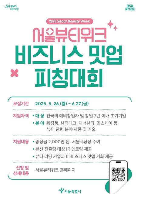 서울시는 ‘2025 서울뷰티위크 비즈니스 밋업 피칭대회’를 오는 8월 29일 동대문디자인플라자(DDP) 컨퍼런스홀에서 개최한다고 밝혔다.