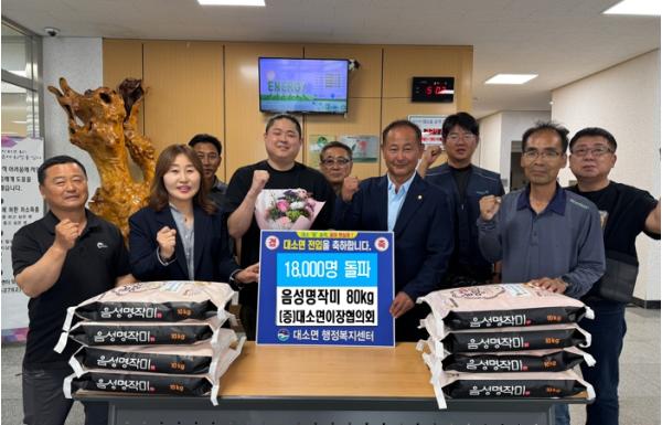 대소면 이장단, 1만8000명 돌파 축하...깜짝 이벤트 쌀 80kg 전달