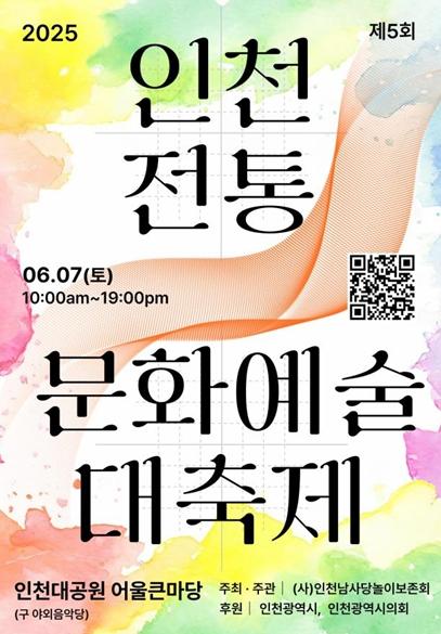 인천광역시는 오는 6월 7일 인천대공원 어울큰마당에서 ‘2025년 제5회 인천전통문화예술대축제’를 개최한다고 밝혔다.