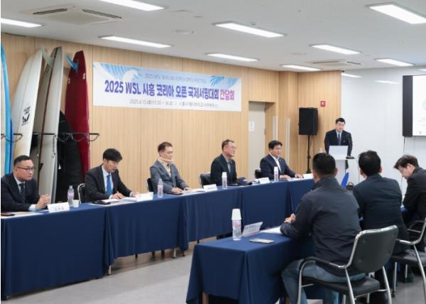 시흥시는 오는 7월 개최 예정인 ‘2025 WSL(월드서프리그ㆍWorld Surf League) 시흥코리아오픈 국제서핑대회’의 성공적인 추진을 위해 4월 15일 거북섬 웨이브파크 내 샤카하우스에서 관계기관 간담회를 열었다.