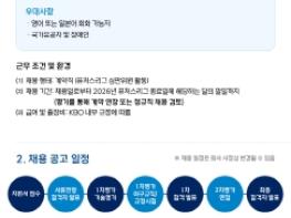 접수 기간은 오늘(6월16일)부터 7월 6일(일)까지며, KBO 채용 홈페이지(kbo.saramin.co.kr)에서 지원 가능하다.