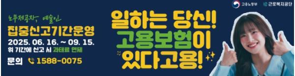 박종길 이사장은 “이번 집중 신고 기간에 많은 예술인과 노무제공자들이 고용보험이라는 울타리 속에서 든든하게 보호받을 수 있길 바란다”라고 전했다.