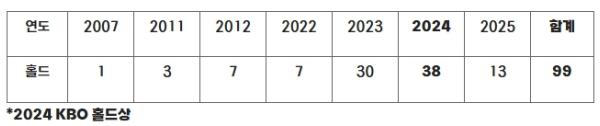 KBO는 노경은이 100홀드를 달성할 경우 표창 규정에 의거해 기념상을 수여할 예정이다.