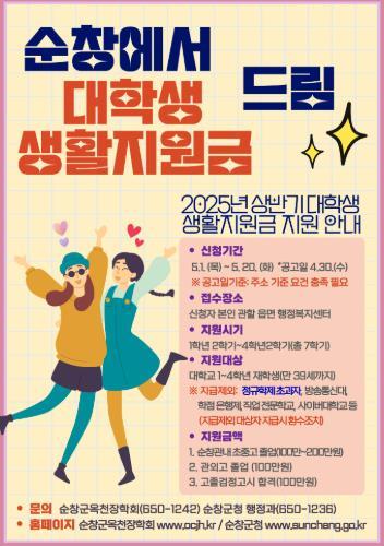 순창군이 순창군옥천장학회와 함께 추진하는‘2025년 대학생 생활지원금’지원 사업이 본격적으로 시작된다.