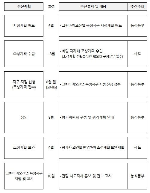 농림축산식품부는 '그린바이오산업 육성에 관한 법률' 제15조에 따라, 지역 주도의 그린바이오 산업 기반 조성을 위한 ‘그린바이오산업 육성지구’ 지정 절차를 본격 추진한다고 밝혔다.