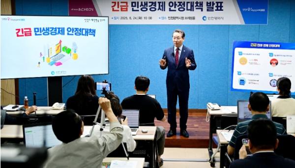 인천광역시는 유정복 인천시장이 6월 24일 시청 브리핑룸에서 ‘긴급 민생경제 안정대책’을 발표하고, 침체된 지역경제 회복을 위한 본격적인 대응에 나섰다고 밝혔다.