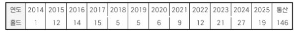 역대 KBO 리그에서 3시즌 연속 20홀드를 기록한 선수는 4명이다. 안지만(전 삼성)과 구승민(롯데)이 4시즌 연속 20홀드를 기록했으며, 주권(KT)과 정우영(LG)은 3시즌 연속 홀드를 기록한 바 있다.