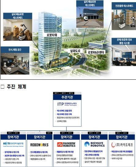본 사업 수행은 인천테크노파크 로봇센터에서 담당하며, 한국전자기술연구원과 ㈜레인보우로보틱스 ․ ㈜빅웨이브로보틱스 ․ ㈜로보웍스 ․ ㈜자이드테크 ․ ㈜로보웍스가 시스템 도입에 참여한다.