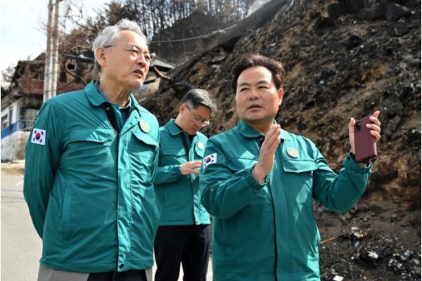 김학홍 경상북도행정부지사는 23일 최근 대형산불로 큰 피해를 당한 영덕군 해파랑길 21코스를 찾은 문화체육관광부 유인촌 장관과 함께 피해 현황을 살피고 회복 방안에 대한 의견을 나눴다.