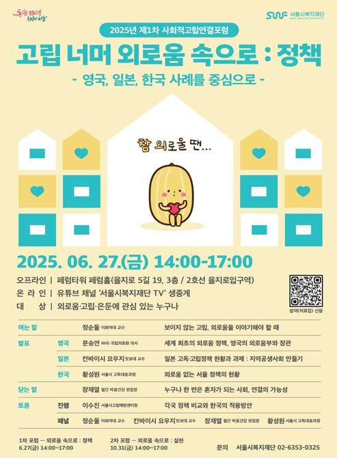 서울시복지재단 내 고립예방센터는 27일 오후 2시, 페럼타워 페럼홀에서 '2025년 제1차 사회적고립연결포럼'을 개최한다고 밝혔다.