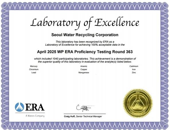 서울물재생시설공단이 최근 2년간 실시된 3건의 국제숙련도 시험에서 전 항목 ‘100% 적합’ 및 ‘최우수’ 등급을 연이어 획득하며, 세계 최고 수준의 분석 능력을 공식적으로 입증했다고 밝혔다.