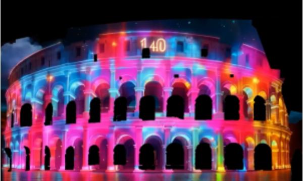 문체부와 문화원, 한국국제문화교류진흥원은 ‘2024~2025 한-이탈리아 상호문화교류의 해’를 기념해 ‘시간의 울림’이라는 주제로 제작한 작품 4편을 프로젝션 매핑 방식으로 콜로세움 외벽에 투사했다. 십장생도와 양국의 전통 건축 패턴 등을 소재로 한 작품을 인공지능 기술로 정교하게 구현했다.