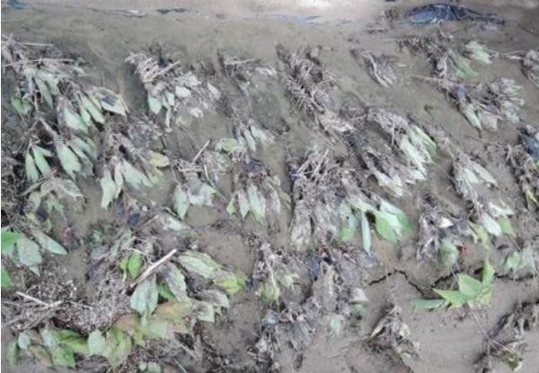 뿌리를 약재로 쓰는 황기, 지황, 천궁도 침수에 취약해 물 빠짐이 좋지 않은 밭에 오래 두면 시듦 증상과 뿌리 부패 관련 병 등이 확산하게 된다.