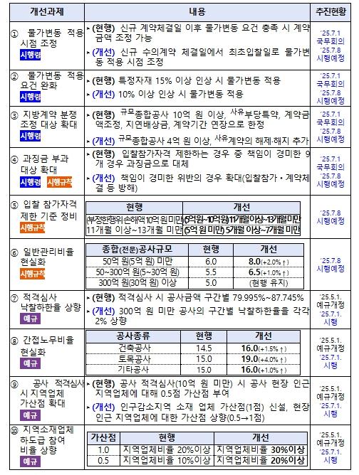 이와 함께 지방계약 제도개선 사항 발표(3월 31일) 후 지난 5월 1일 개정한 지방계약 예규의 일부 개정사항이 7월 1일부터 전면 시행된다.