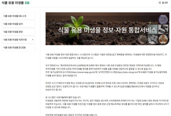 식물 유용 미생물 정보‧자원 통합서비스 시스템에서는 미생물 농약, 비료 주성분 미생물 이름, 균주 번호 등 기본 정보와 작물 생육에 미치는 미생물 효과, 병해충 관리, 토양 개량 등 관련 정보를 제공한다.
