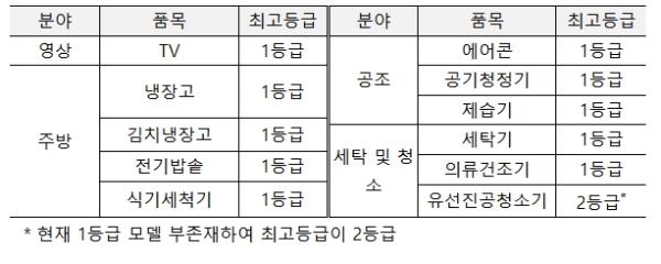 이번 사업은 내수진작과 더불어 전력소비 절감과 고효율제품 사용 문화 확산, 기업들의 에너지효율 기술개발을 촉진하기 위해 과거 사업과는 달리 최고등급 제품만 환급 대상이다. 올해 에너지소비효율등급제로 관리가 시작된 식기세척기가 새롭게 포함됐고, 1등급 제품이 없는 유선 진공청소기의 경우 2등급을 지원한다.